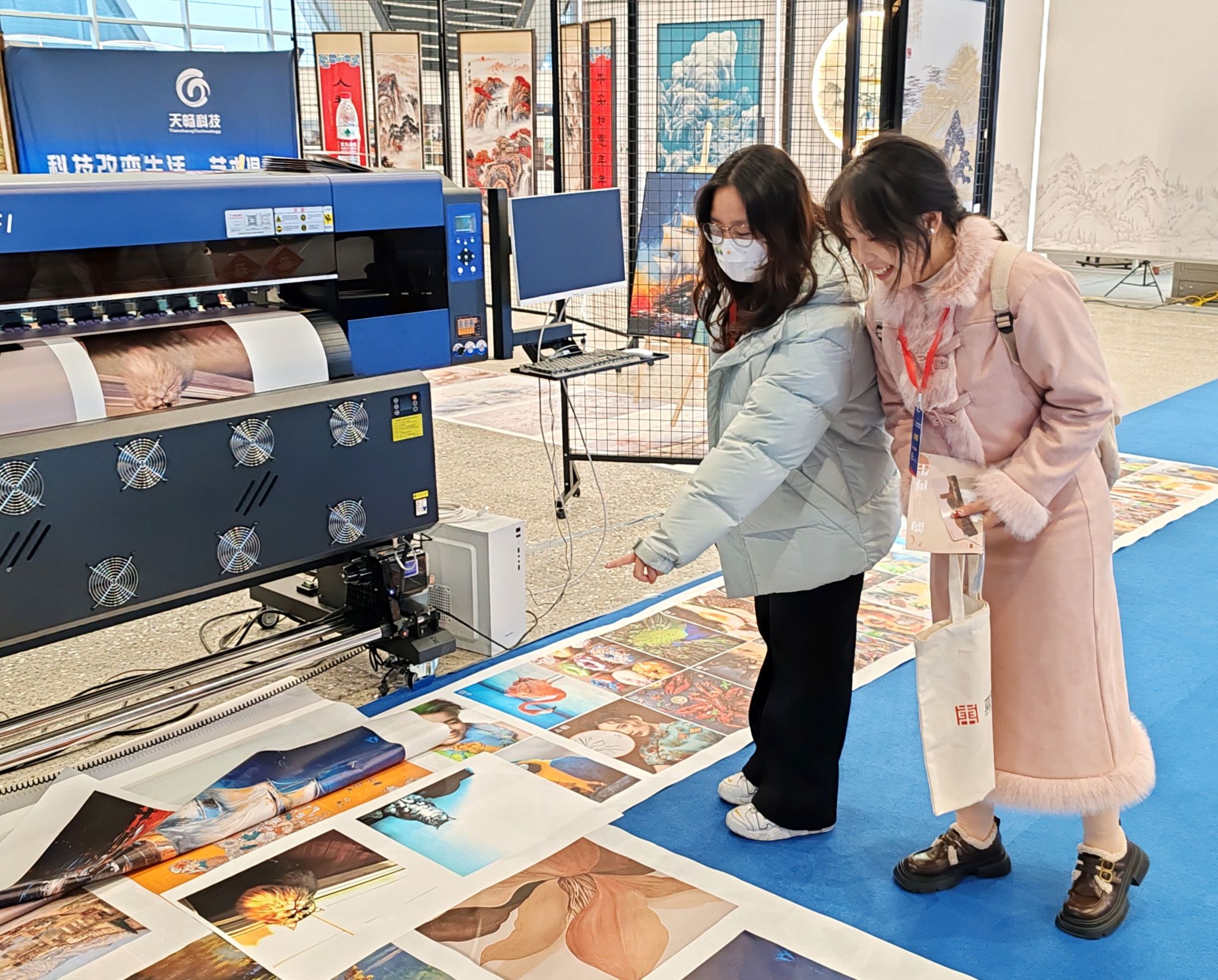 活动现场,美院学子们参观了会展中心的先进技术、创新展示,不仅观赏到许多美轮美奂、精雕细琢的优秀作品,还能亲身体验现场布置的3D打印机技术。看到如今很火热的AI智能技术,同学们迫不及待地想与机器互动。展厅中的广告设计作品也给同学们带来了很多设计灵感。