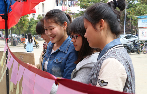 据悉,此次活动除了猜字谜外,还有“三月三,写三行”活动,每个选手拍当季盛开的花儿照片,并且用三句英文来描述,这个活动将一直持续到三月二十号。(文/学生记者 肖奇琳 秦天宝 图/学生记者 王宵璐)