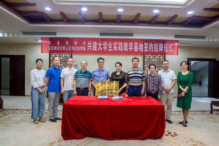 9月14日上午,人文与社会学院与安徽博物院举行了共建大学生实践教学基地签约挂牌仪式。仪式由人文与社会学院院长董根明与安徽博物院党委书记、院长胡敏共同主持。安徽博物院副院长郑龙亭及有关同志、学院党总支书记韦长发与有关同志参加了签约挂牌仪式。