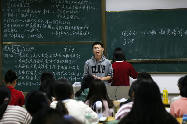 除了惊讶,黄耀也感受到了深深的压力。“这么多同学来听我们的‘考前抢分课’,听‘学霸’们分享自己复习教师资格证的方法,我担心自己讲得不好或者讲得不到位,起不到帮助同学们的效果。”黄耀说。
