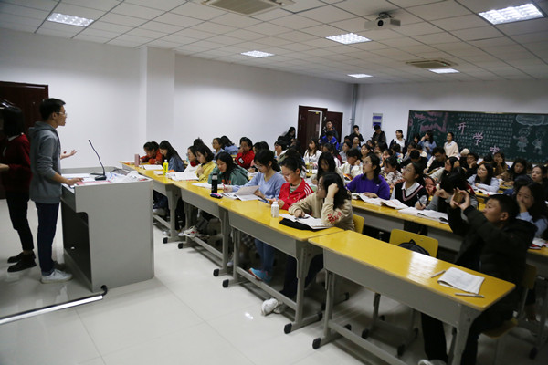 看到教室里的座位上坐满了人,后面的过道站着十几个前来听课的同学,小学教育专业2016(2)班的黄耀坦言很惊讶,“没想到会有这么多的同学会来听‘考前抢分课’,我之前以为只能来四五十个同学。”
