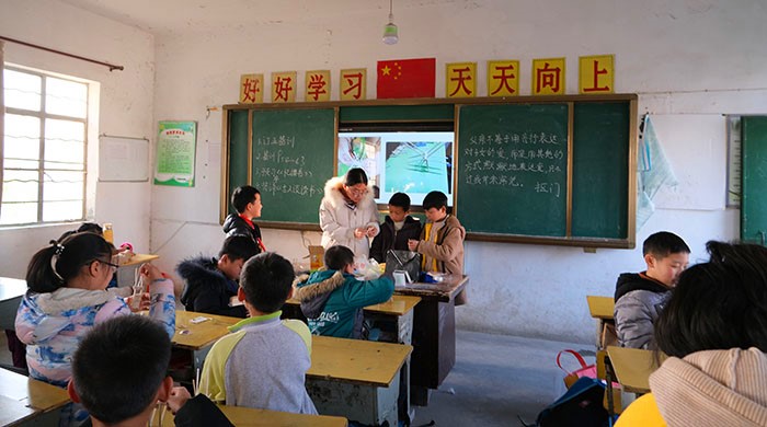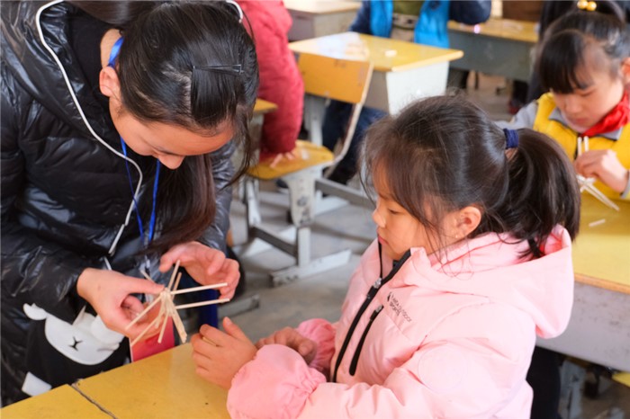 浇灌教育之花不是一蹴而就的事情。“每周三下午,无论刮风下雨,我们都会来到这里。”小学教育专业2018(2)班的朱永琪说,在大龙山中心小学的校园里,“七彩课堂”成了孩子们发展兴趣的乐园。她介绍:“我们分设书法、手工、舞蹈、朗诵、绘画、音乐六类兴趣班,每个班级30人左右,其中舞蹈班因为学生数量较多,设置了两个小班。”除此之外,大龙山镇上的永林小学和桃元小学也会有来自安庆师大志愿者们的义务支教辅导。
