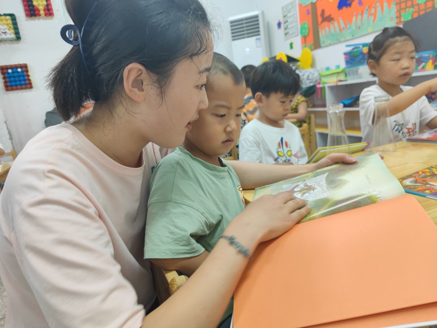 在下午的绘画活动中,授课老师齐雨荷开始提问:“请问可爱的小朋友们,现在是什么季节?”孩子们热情高涨的抢答,活动氛围活跃。志愿者又给孩子们展示了四幅不同特点的图片,进一步引导孩子们展开想象,尽情讨论。一些孩子迫不及待的要拿起画笔开始创作,彩色的画笔在他们的小手中飞舞着,每一笔都描绘出他们眼中所发现的夏天之美,都闪耀着孩子们创作的灵光、洋溢着他们快乐的童年。课程最后,小朋友们上台为自己的画命名,相互讲述着各自的作品。本次集体绘画活动,让孩子们了解并发现自然的美丽,引导孩子们进行观察、大胆想象,提高孩子们的表现力和创造力,激发出绘画兴趣。
