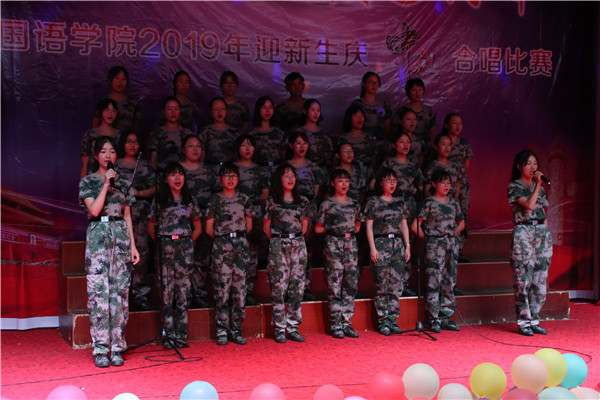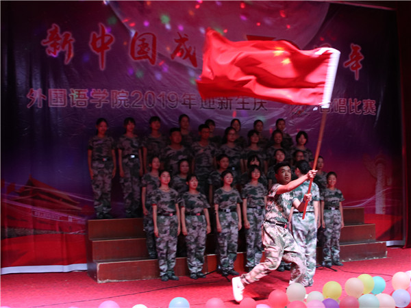 随着热烈激情的开场舞表演完毕,合唱比赛正式开始。“河山只在我梦萦,祖国已多年未亲近,可是不管怎样也改变不了,我的中国心。”《我的中国心》这首歌以海外游子直抒胸臆的语气切入,整个意境波澜壮阔。2019级商务英语(2)班全体同学挥舞着国旗和印有“我爱你中国”的宣传牌,声情并茂地演唱着。观众们也受到爱国激情的感染,大声地跟唱。一曲唱罢,掌声久久不息。“这首歌我们排练了好几天,每天至少排练两个小时,辛苦总算没有白费。”外国语学院商务英语专业(2)班的夏侯晴在表演结束后感叹。我唱完后感觉畅快淋漓。