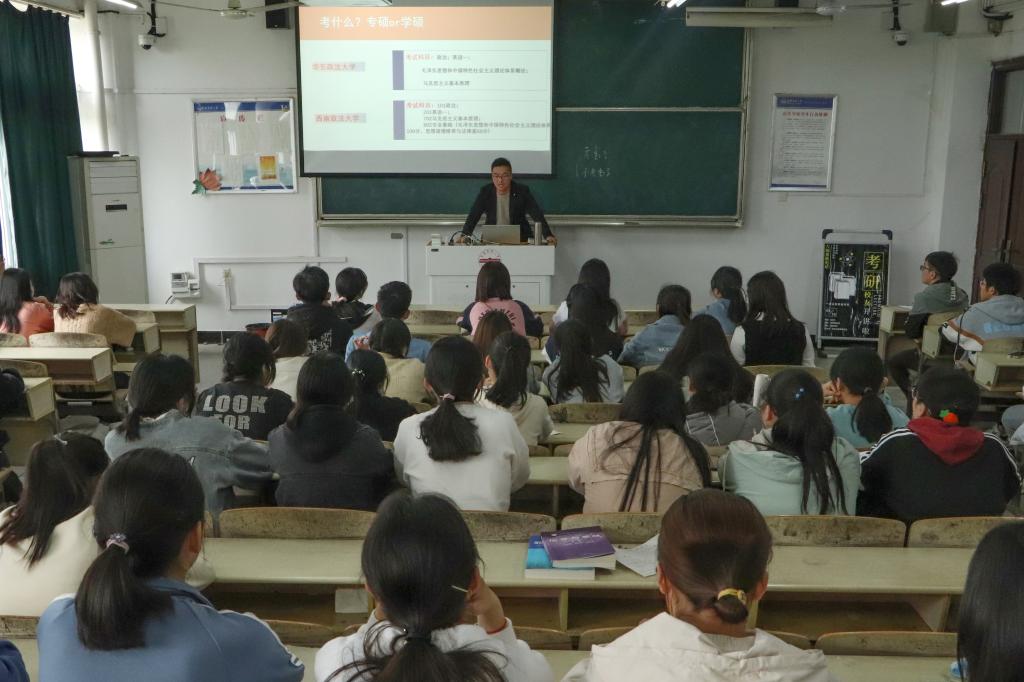 “距离2023考研,你还有252天。”4月16日,马克思主义学院专职辅导员田梦甜应邀为学生带来满满的考研“干货”分享,约100人参加此次课堂。