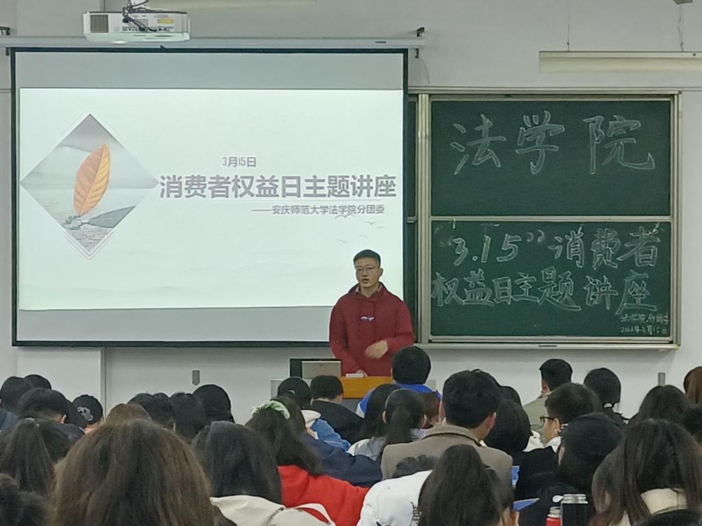 3月15日是第39个消费者权益日,法学院团委在文津楼开展了“依法维护自身合法权益,共同营造良好消费环境”主题讲座。法学院团委、学生会成员、学生代表共200余人参加了此次活动。