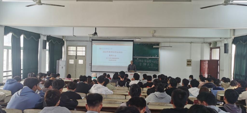 赛前,电子工程与智能制造学院于稼先楼多二教室举行此次运动会的誓师大会。学院领导、辅导员代表、运动员代表、志愿者代表及全体学生会成员参加大会。大会由团委负责人陈秋生主持。