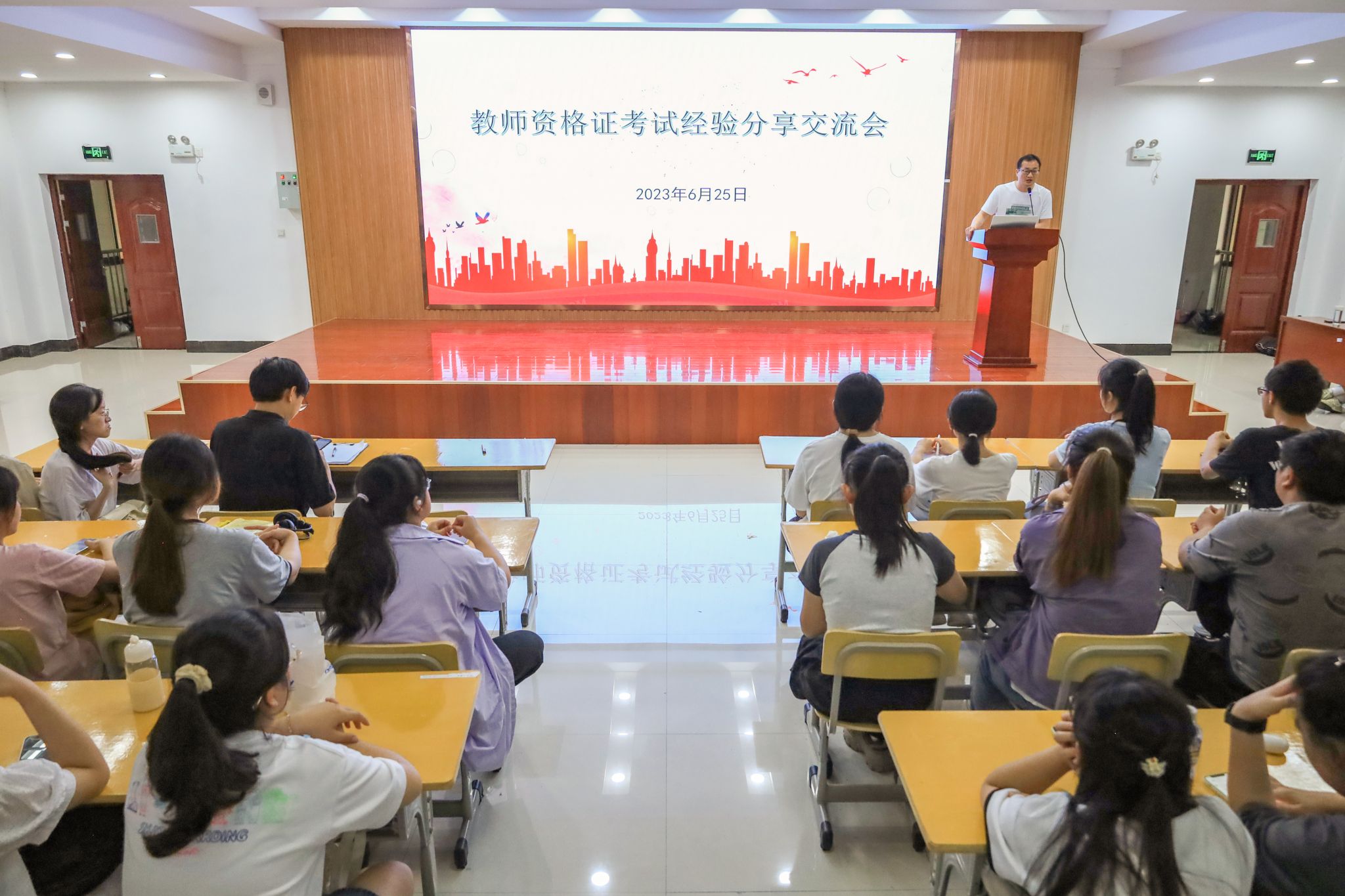 数理学院高度重视学生师范生基本技能的培养,通过开展粉笔字展演、演讲比赛、教师资格考试经验分享交流等活动,在全院营造良好的师范生技能学习氛围。此次分享会加强了学生对教资考试的认识和了解,为其进一步明确备考规划,挖掘自身潜力提供专业指导,帮助其掌握学习方法和技巧,使学生们能够更快、更高效地投入到备考之中。(撰稿:学生记者 滕军 朱睿 摄影:学生记者 董选如 李佳慧 编辑:江伟 审核:彭芳珍 赵丽丽)