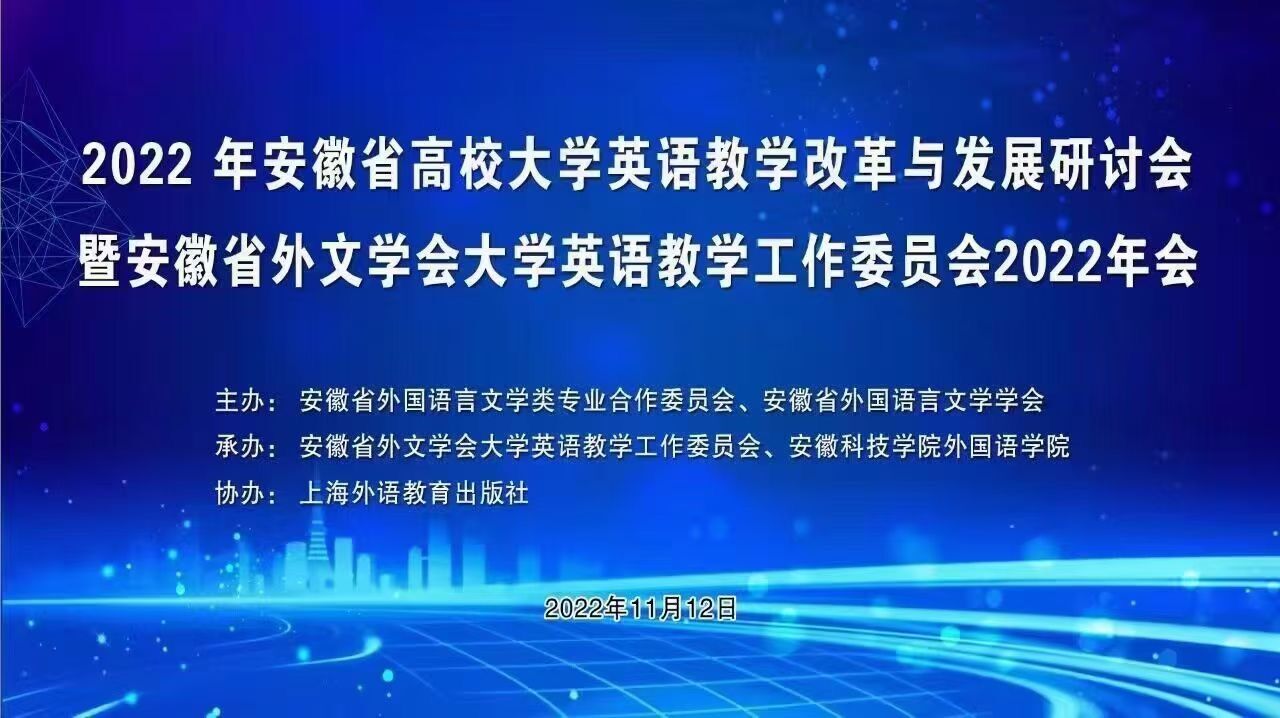 11月12日,2022年安徽省高校大学英语教学改革与发展研讨在线举行。本次会议由安徽省外国语言文学类专业合作委员会、安徽省外国语言文学学会主办,安徽省外文学会大学英语教学工作委员会和安徽科技学院外国语学院承办,上海外语教育出版社协办。全省各高校外国语学院领导、大学英语教师700余人参会。beat365官网外国语学院大学英语教学部全体教师参加学习交流。外国语学院院长、安徽省外文学会大学英语教学工作委员会主任王先荣教授在开幕式环节致辞。