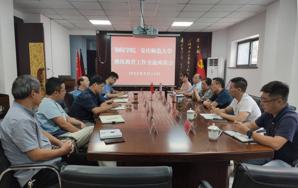 9月14日,铜陵学院继续教育学院院长李欣、副院长余大卫一行6人来beat365官网考察调研继续教育工作。beat365官网继续教育学院院长韦长发等热情接见了铜陵学院一行,并主持召开两校继续教育工作交流座谈会。