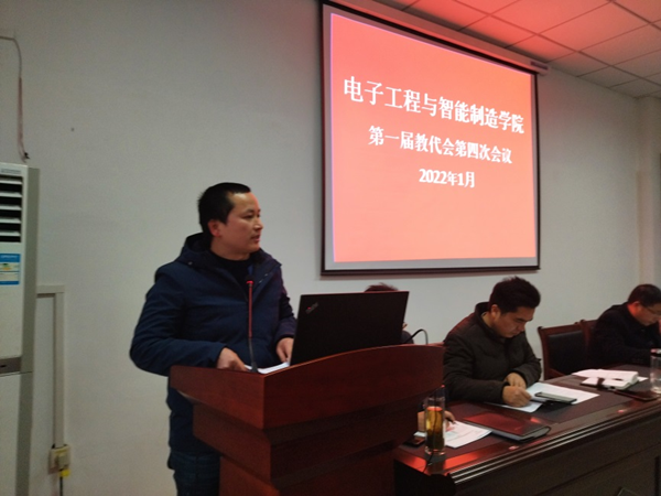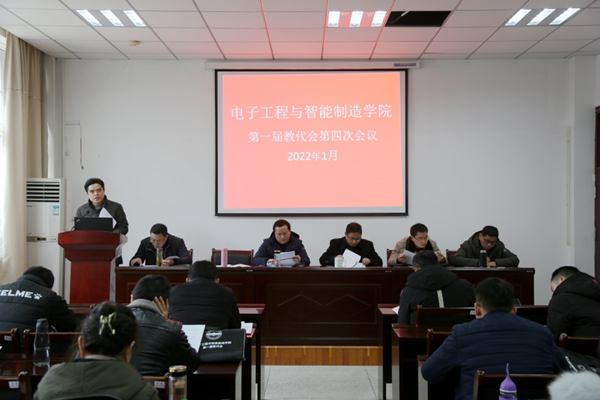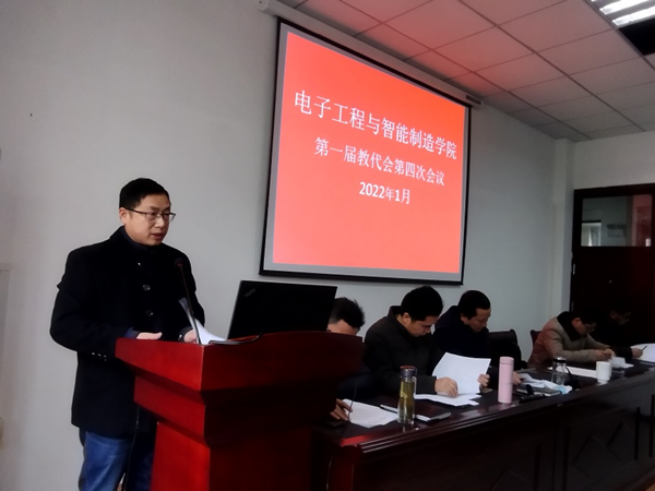 1月21日,电子工程与智能制造学院召开第一届教职工代表大会第四次会议。院领导夏云高、董甲东、关德军、江善和、章礼华、查长礼和院教代会代表共30余人参加了会议。