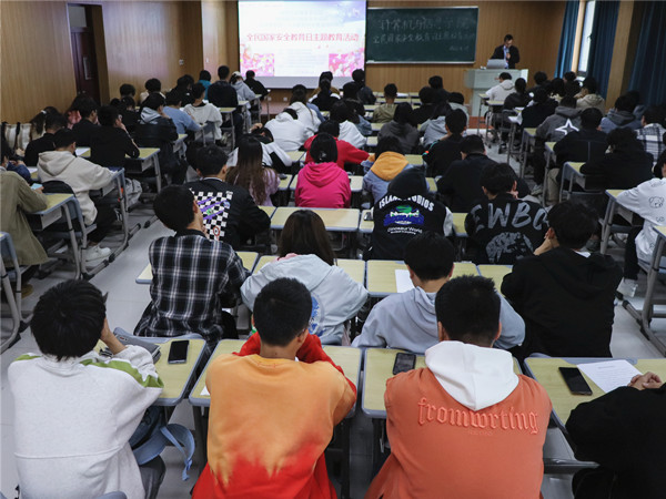 活动中,陈银凤作了国家安全日教育专题讲座,介绍了国家安全日的由来、今年的安全日教育主题以及国家安全的内涵,分析了当前国内外安全形势,用典型事例对在场学生们进行了安全教育,并提出了明确要求,她希望广大青年学生要通过国家安全日的主题教育,熟悉国家安全的内容,切实增强国家安全的意识,树牢总体国家安全观;要进一步增强国家安全责任,学会识别安全陷阱,拒绝诱惑,履行好公民好青年的责任,做到知法、懂法、守法、用法;要强化学习与竞争意识,增强本领争做新时代IT先锋,向社会呈现新时代有为青年良好形象。