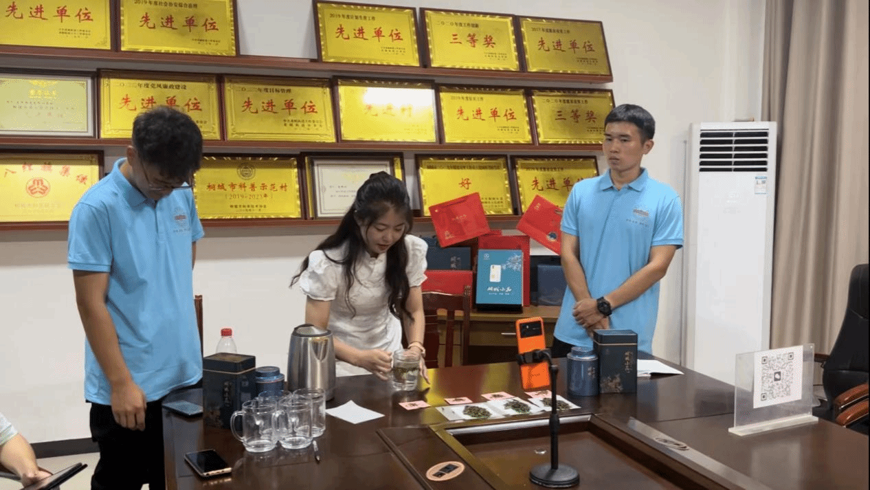 为解决桐城小花品牌知名度不够高等问题,7月13日,团队抖音开展直播活动。团队认真打磨直播文案,围绕介绍中国茶文化、桐城小花的历史和生长环境、茶叶的生产工艺、冲泡方法等环节进行直播。同时邀请当地茶农,详细介绍茶叶的生产工艺和冲泡方法,整场直播获得3.8万的点赞量,达到了预期的宣传效果。