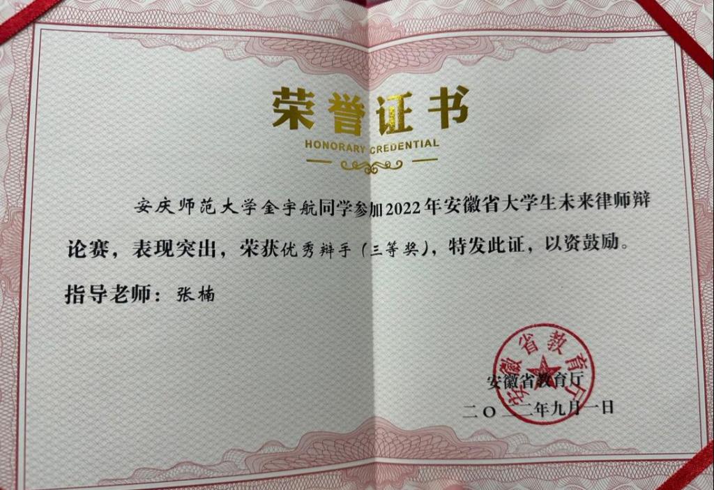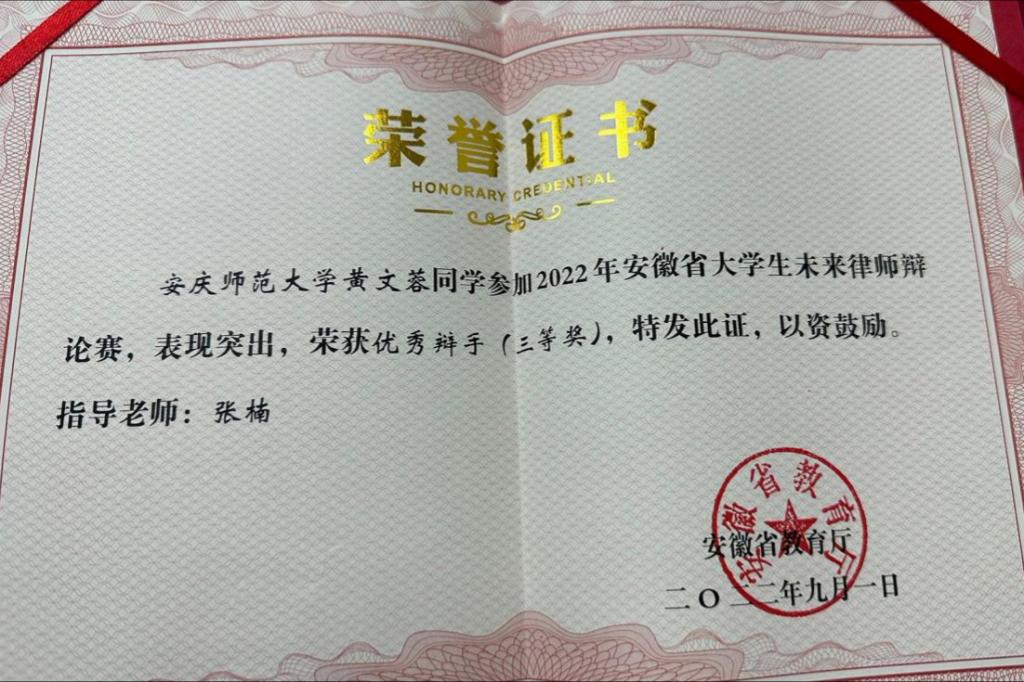 近日,由安徽省教育厅主办,皖西学院承办的2022年安徽省大学生未来律师辩论赛落幕。经过激烈的角逐,beat365官网代表队2021级法学类3班的金宇航、黄文蓉两位同学分别荣获优秀辩手。