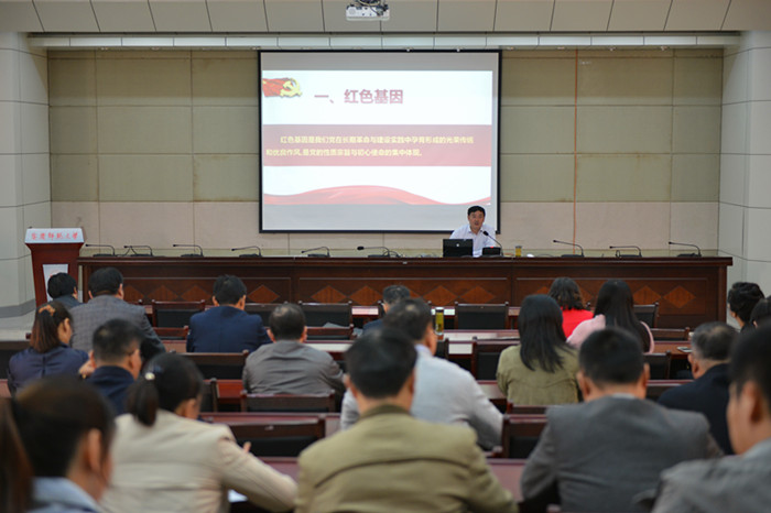 11月8日上午,机关党委书记金根山以《传承红色基因,砥砺初心使命》为题,为机关党员干部上了一堂专题党课。
