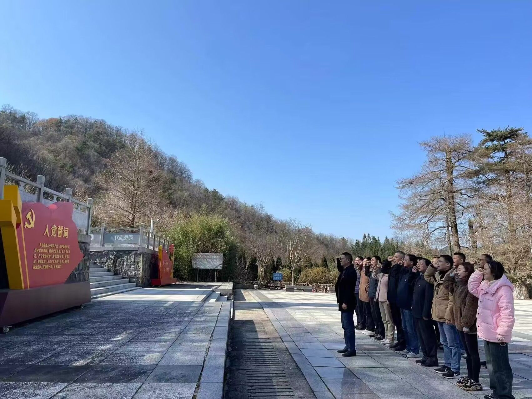 在岳西县包家乡鹞落坪村,全体党员参观了红二十八军展陈馆、白果树(军民同心树)、聂家老屋和手枪团旧址。在讲解员讲解带领下,大家驻足观看了一幅幅人物图片和历史文物,详细了解高敬亭领导的红二十八军所经历的三次艰难组建过程及在鄂豫皖艰苦卓绝的游击战争历史,重温那段红色峥嵘岁月。在纪念馆广场前,全体党员面向鲜红的党旗,高举右拳,庄严宣誓,重温入党誓词,不忘初心使命。