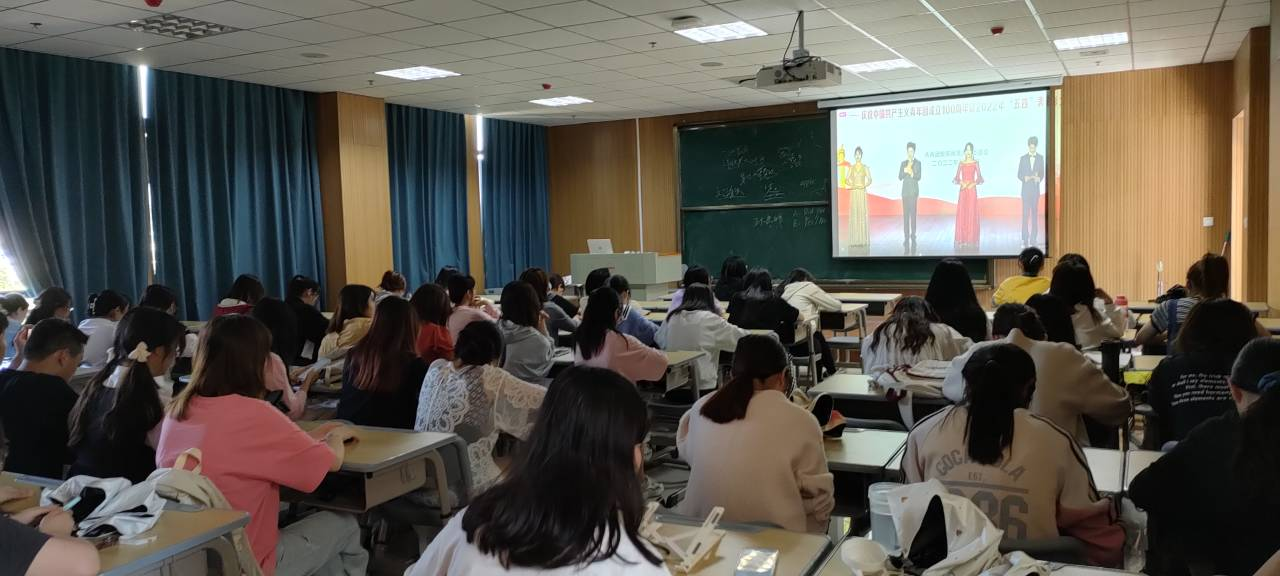 各班团支部和学院学生会组织观看了学校庆祝中国共产主义青年团成立100周年暨2022年“五四”表彰大会的视频直播。