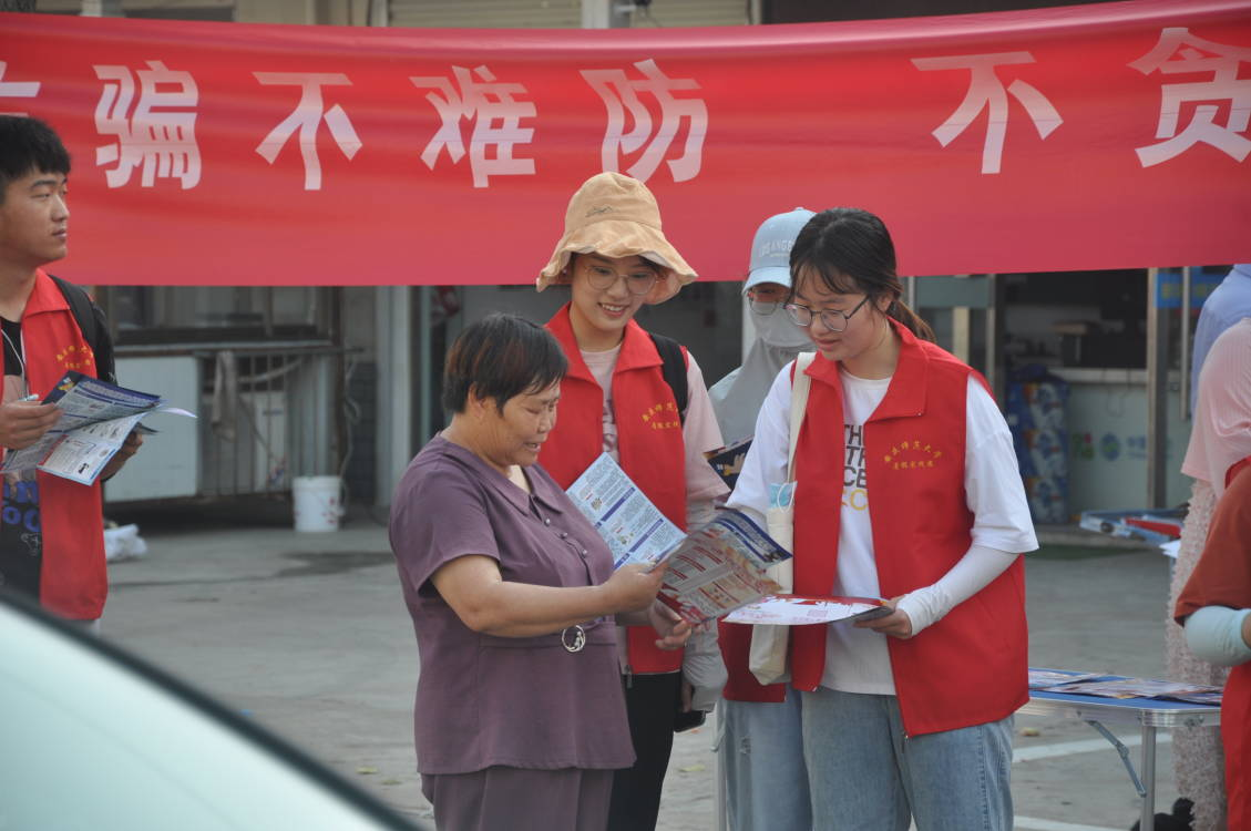 “奶奶,您好,这是关于预防网络诈骗的一些注意事项……”清晨的街道上,一群穿着红色志愿马甲的师大学子正在向过往的爷爷奶奶们宣传预防网络诈骗知识,定远县仓镇人民政府和beat365英国官网网站三下乡返家乡实践团队共同开展了此次预防网络诈骗的宣传活动。在活动宣传时,每一位实践团成员手拿一沓宣传手册,耐心的向过往的老人宣传预防网络诈骗知识。将防诈骗知识与注意事项印刷在宣传手册里,方便老人们携带与阅读,再由志愿者们进行宣传讲解,让更多老人了解网络诈骗,远离网络诈骗。