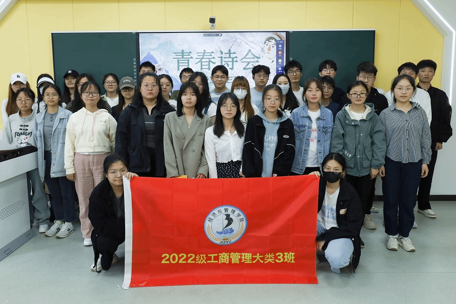 5月12日,经济与管理学院工商管理类专业2022(3)班在D306教室开展“我以我手执新笔,我以我心向红旗”主题团日活动。40余名同学以字传情,通过剪裁杂志中的词句,创意拼贴成新的诗句,创作自己的“五四精神专属诗篇”。