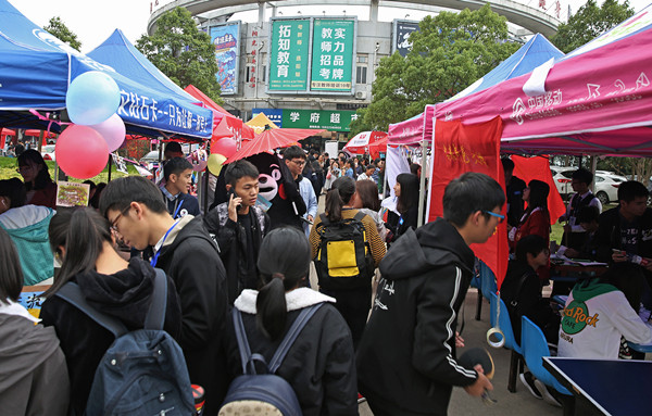 10月14日上午,一年一度的社团招新“百团大战”,在龙山校区拉开帷幕。近百个社团通过展示自身特色,吸引大一新生加入,为社团发展注入新动力。“小鲜肉”们也借此机会了解校园文化,加入感兴趣的社团,充实自己的大学生活。据悉,今年两校区社团累计招新7656人次。