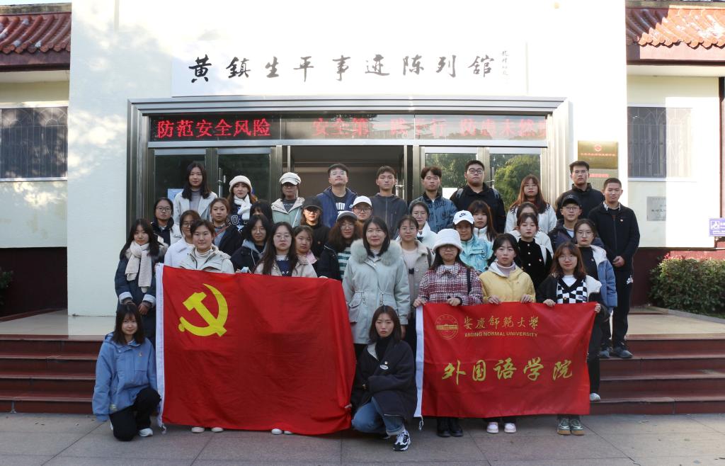 12月1日,外国语学院组织2021级学生代表——第65期入党积极分子培训班学员开展爱国爱校教育实践活动,先后赴黄镇生平事迹陈列馆和菱湖校区校史馆进行参观学习。