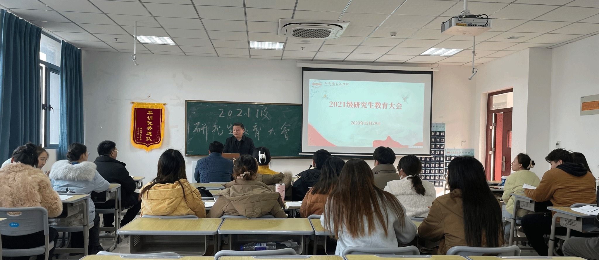 12月29日,马克思主义学院在Q304教室召开2021级研究生教育大会。马克思主义学院党委副书记邹斌、学院副院长张俊生、研究生辅导员以及2021级全体研究生参加会议。