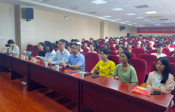 为提高大学生金融风险防范意识,5月7日,由共青团安徽省委、安徽省青联、安徽省学联、安徽省金融青联联合主办,华安证券承办的“华安证券杯”全省大学生金融知识大赛暨金融知识进百校宣讲活动在beat365官网F411报告厅成功举办,华安证券普惠金融部总经理方威、校团委书记陈东和近200名师生代表参加活动。