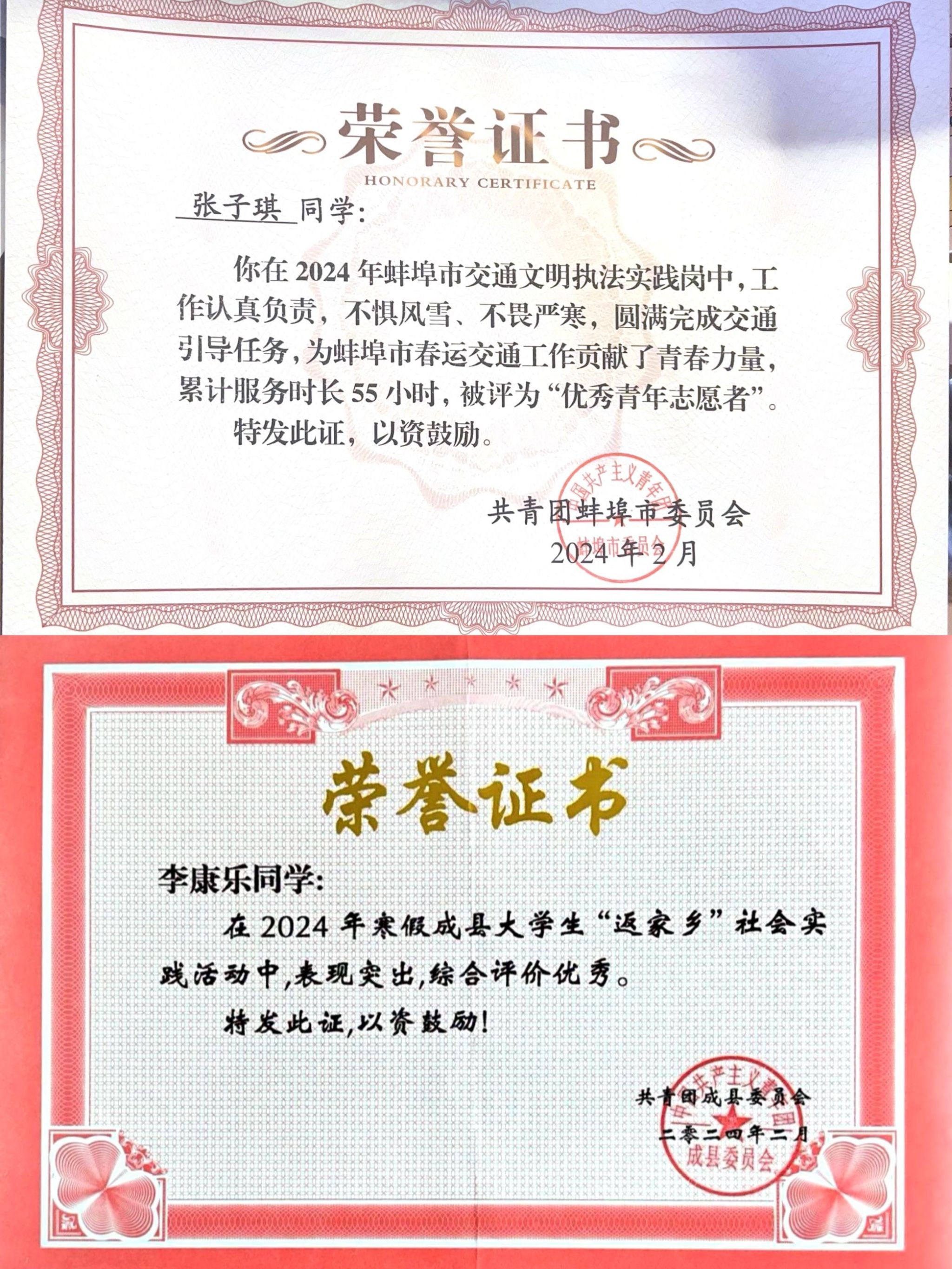 寒假期间,2023级思想政治教育专业延乔班共18人次参加社会实践,占班级人数的64.28%。思想政治教育专业2023级延乔班李玉婷参加了返乡潮高铁站服务志愿活动与社区服务,她在谈及本次活动中说到,“这次实践活动为我们青年创造了一个更深入理解社会、服务社会的平台,作为一名思想政治教育专业的学生,我会将本次的收获与所学专业知识融合,在未来为更多人提供更优质的帮助,为家乡和社会发展贡献力量。”思想政治教育专业2023级延乔班张子琪主动报名参加了由共青团蚌埠市委员会、蚌埠市交通运输局联合举办的蚌埠南站交通执法实践活动。通过寒假的“返家乡”社会实践活动,同学们增长了知识、提升了能力,更增强了对家乡的归属感和对社会的责任感。