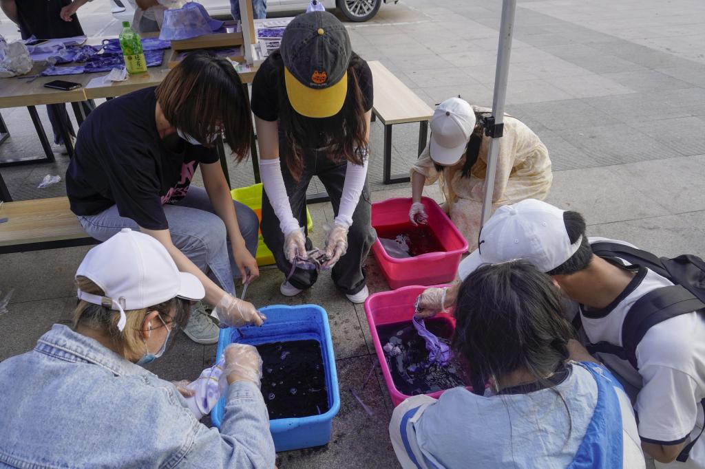 活动负责人、法学专业2020(1)班丁文博介绍,“我们为大家准备了方巾、笔袋、帽子、帆布袋等多种扎染素材,同学们可根据爱好自主选择,希望大家能够在体验中感受扎染这一非物质文化遗产的魅力。”