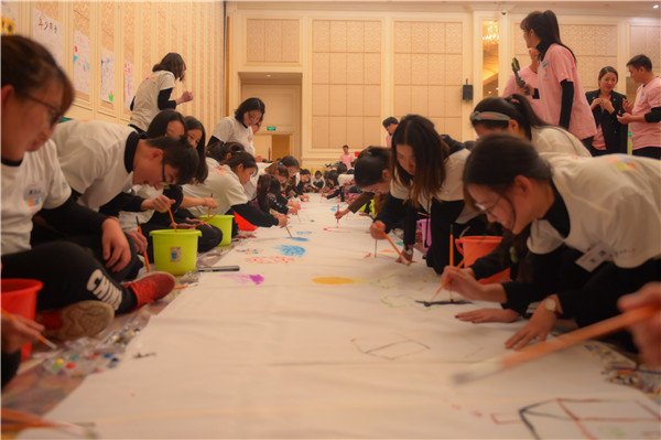 一幅洁白的画卷铺展在活动现场,等待大家画满自己对未来的美好憧憬。十分钟的时间里,义工和学员们共同绘制出了这份属于集体的记忆。