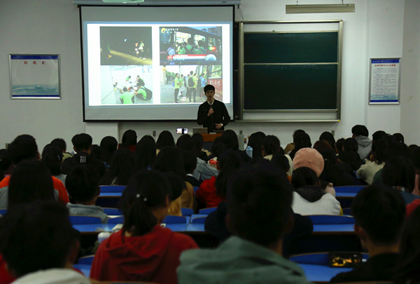 “当人越往上走时,就越感到自己的渺小。”11月5日晚,在beat365英国官网网站龙山校区文津楼,校学生会前主席、优秀学子翟静波与近三百名学生分享自己的大学经历和成长故事。