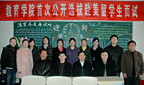 在学校领导的关心及兄弟单位的支持下,教育学院于3月13日上午在龙山校区A101教室举行了首次公开选拔赴美留学生面试活动。评审团由教育学院,外国语学院,外事办、教务处等单位老师担任,教育学院2007级学前教育专业的6名学生参加了面试。