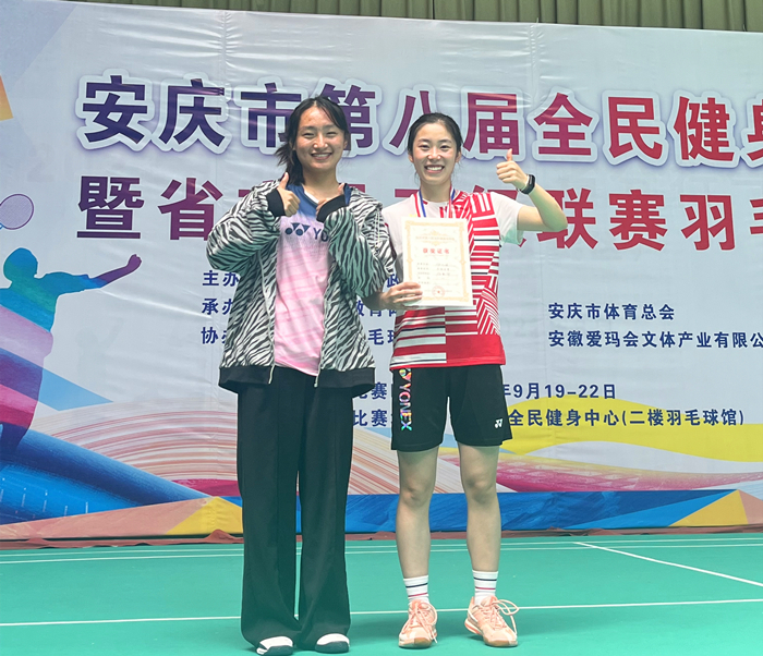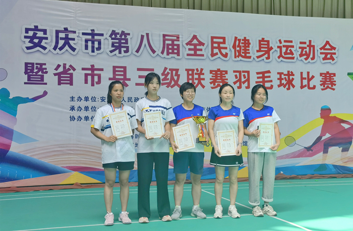 9月19日至22日,安庆市第八届全民健身运动会暨省市县三级联赛羽毛球比赛在安庆市爱玛会球馆举行。本次比赛设有团体赛和单项赛,共有来自安庆市县区的35支代表队、405名运动员参加比赛。beat365官网5名运动员在教练员王友亮的带领下,顽强拼搏,获得女子单打冠军、女子单打季军和女子团体第二名的好成绩。