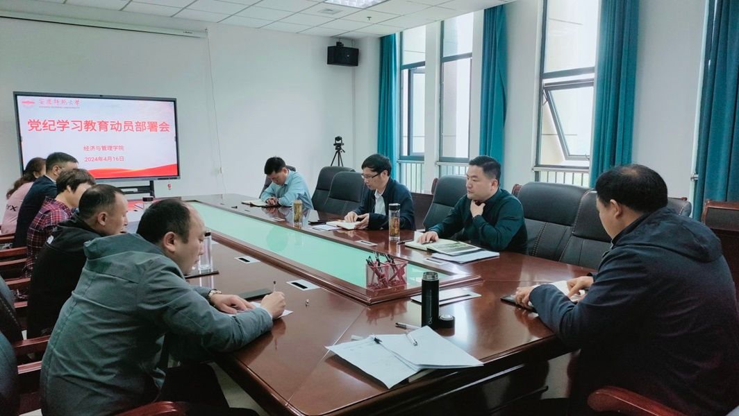 4月16日,经济与管理学院召开党纪学习教育动员部署会。学院领导班子成员、党委委员、纪委委员、党支部书记参加会议。会议由学院党委书记许俊杰主持。
