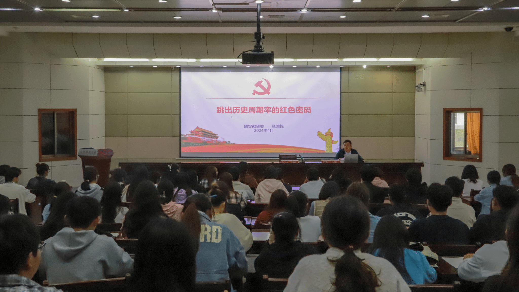 4月11日,校第十五期“青马班”在行政楼一楼会议室举办“跳出历史周期率的红色密码”专题讲座。团安徽省委学校部二级调研员张国栋应邀主讲。第十五期校“青马班”成员、校级学生组织代表、青年学生代表参加讲座。