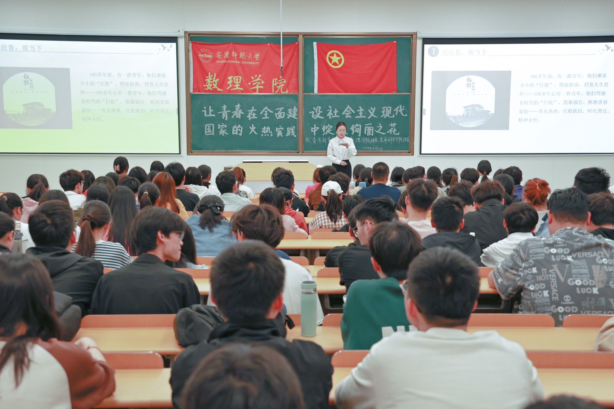 近日,数理学院邀请校“青年新声”宣讲团举办“让青春在全面建设社会主义现代化国家的火热实践中绽放绚丽之花”主题宣讲会。数理学院入团积极分子、2023级各班团支书、青马班成员以及生命科学学院入团积极分子近150人参与宣讲会。