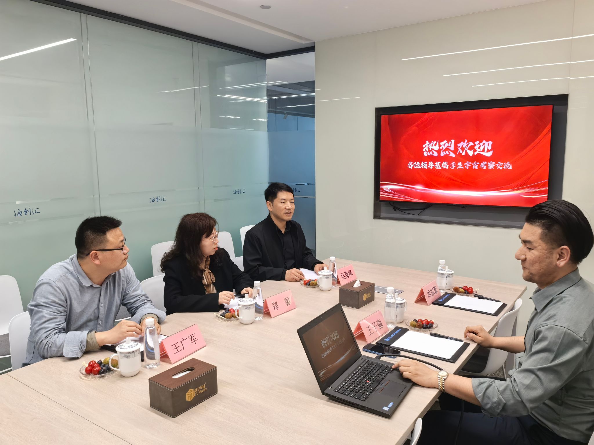 吴海峰一行参观了合肥孪生宇宙科技有限公司的研发中心,了解了公司在虚拟现实领域的最新研究成果和技术应用,以及在教育、游戏和人工智能等领域的解决方案,展示了公司的AI技术在多领域的应用潜力。参观结束后,吴海峰与公司负责人就实习岗位设置及拟接收人数进行了进一步交流。