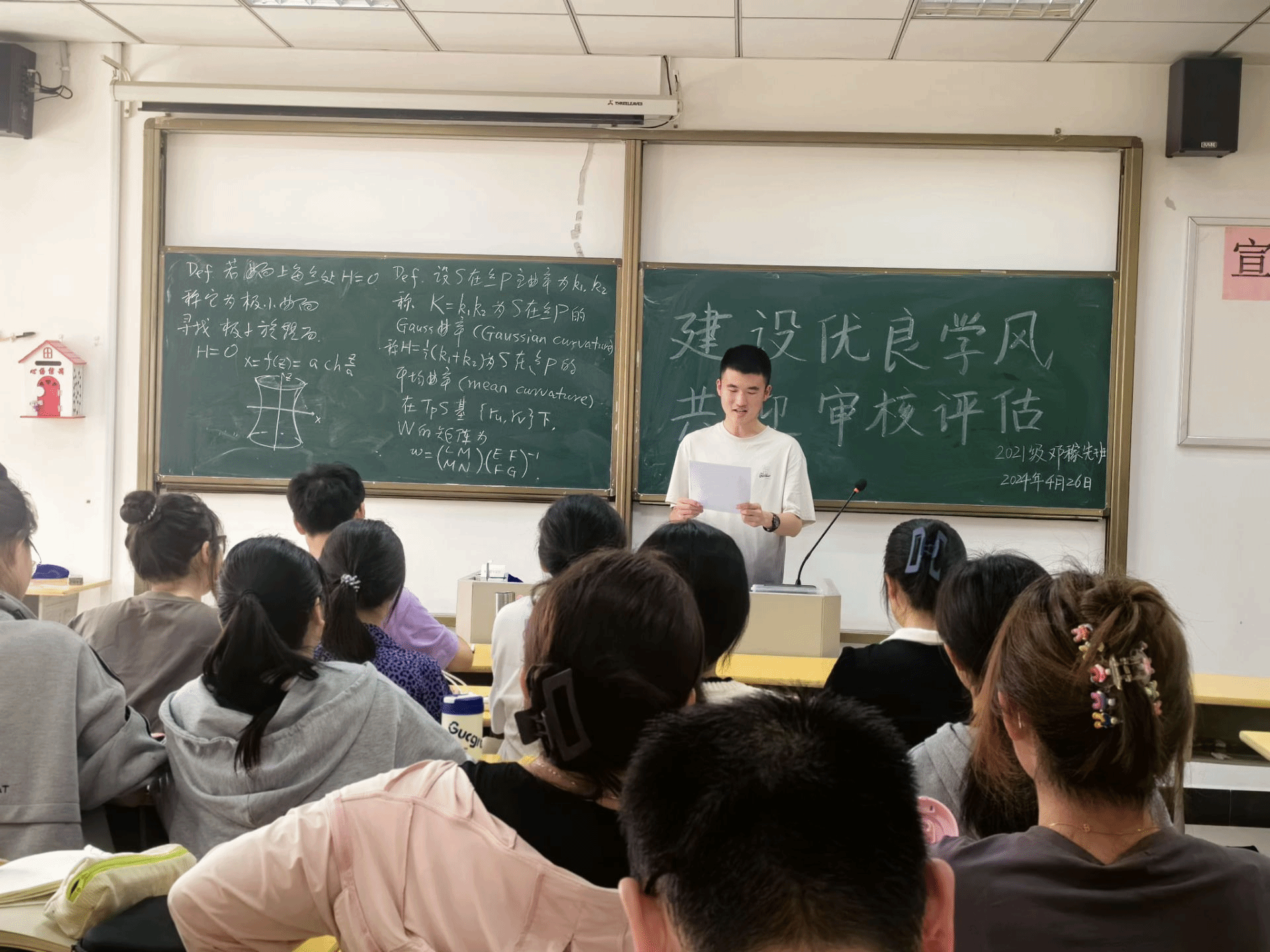 4月23日至26日,数理学院各班立即行动,相继开展主题班会。会上,各班辅导员对迎评时间进行了再次强调,介绍了评估的有关事项及重要性,并带领学生再次学习《beat365英国官网网站本科教育教学审核评估应知应会(学生篇)》和《迎评期间学生的基本要求》。各班班长带领全体同学一起宣读《数理学院迎评倡议书》,同学们积极表态,一定会做到学风优良,宿舍卫生,行为文明,以实际行动践行爱校荣校之情。