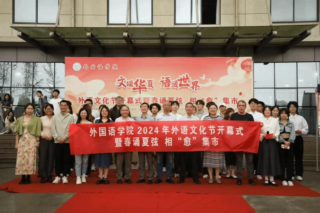 5月11日,外国语学院于学院北门广场举行2024年外语文化节开幕式暨春诵夏弦 相“愈”集市活动。学院党委书记李亦亮、院长王先荣等全体党政领导班子成员、部分教师代表及外籍教师出席开幕式,并与300余名学生共赴音乐与文化交织的多彩市集。