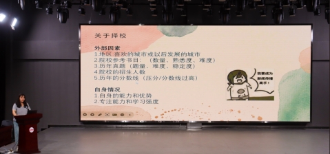 来自新闻学专业、广播电视学专业、网络与新媒体专业的5名考研成功的毕业生,从备考经历、各科复习方法、目标学校及专业选择、考研调剂注意事项、考研心理调适等方面进行了经验分享,让同学们更加明确考研的意义,增强考研的信心和决心。