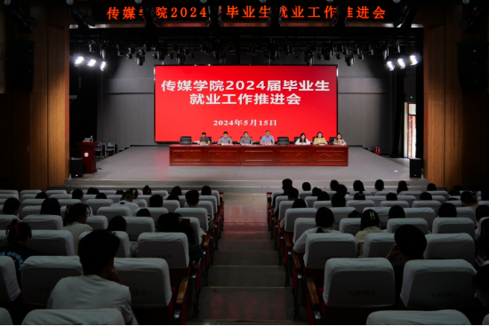 5月15日,传媒学院在演播厅召开2024届毕业生就业工作推进会。学院党委书记詹德全、副院长王业明、党委副书记张万茂出席会议。学院就业秘书、毕业班辅导员和2024届毕业生参加会议。会议由党委副书记张万茂主持。