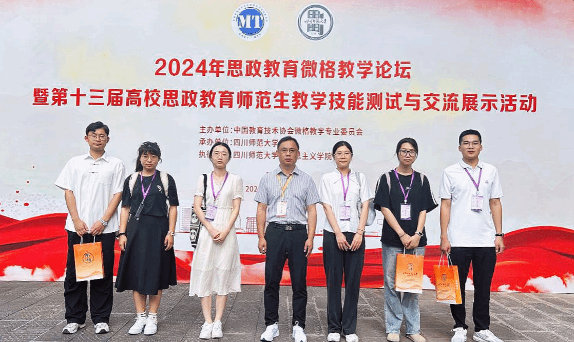 5月24日至27日,由中国教育技术协会主办、四川师范大学承办的第十三届“华文杯”全国师范院校思想政治教育专业师范生教学技能大赛在四川成都举行。马克思主义学院选拔5名研究生、1名本科生参加决赛,2022级学科教学(思政)专业彭宏炜、夏巧云,2023级学科教学(思政)专业李博文、孙文星、许晓倩,2022级思想政治教育专业夏宇等6名同学分别荣获全国三等奖。