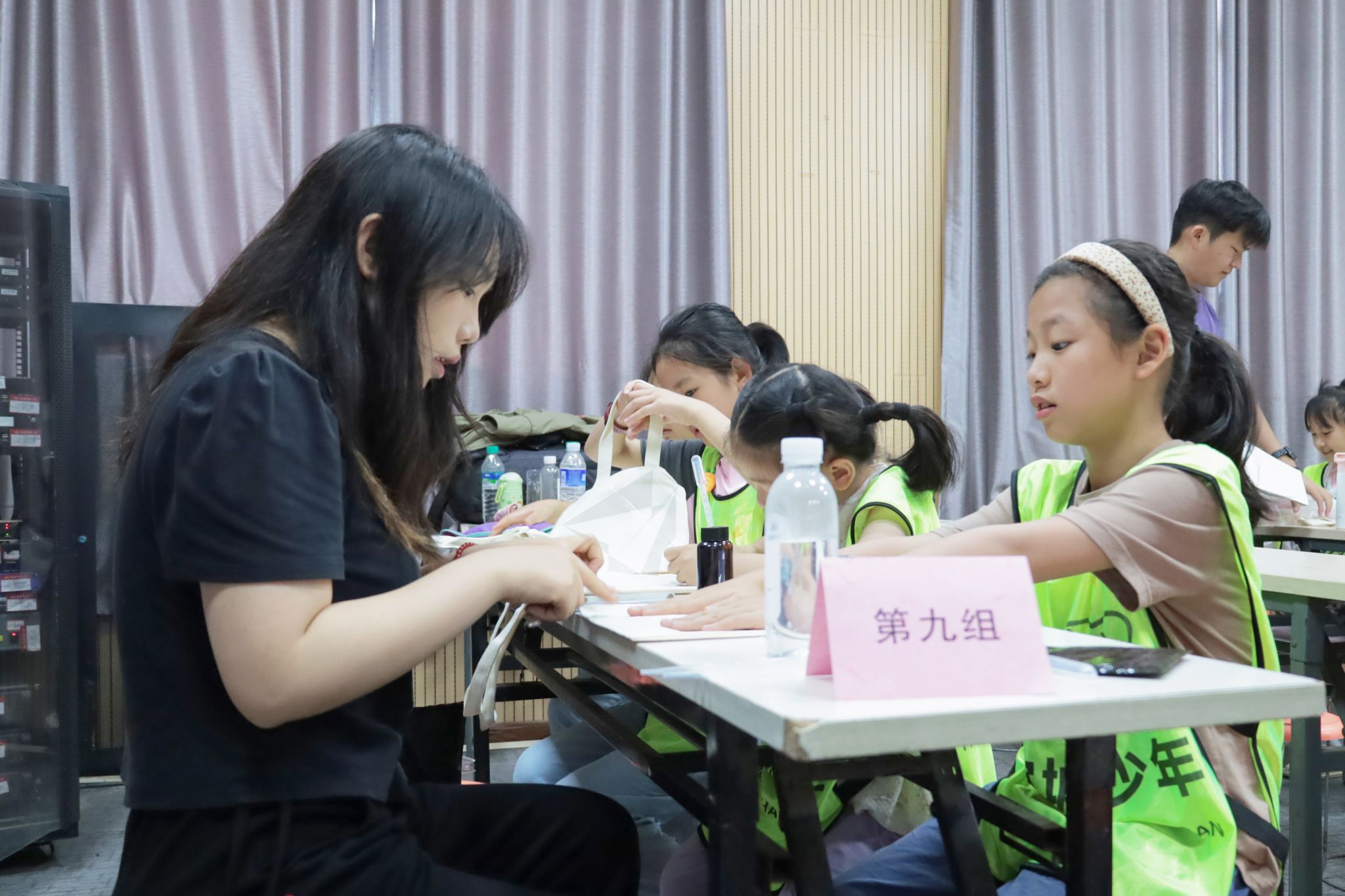 6月2日,美术学院在学院学术报告厅开展“自然的印记·借光行动”——“蓝晒植物拓印”手工公益志愿活动,一群学生志愿者带着44位小朋友,以树叶为素材,利用蓝晒与拓印技艺,在纯色帆布包上留下了独特的印记。