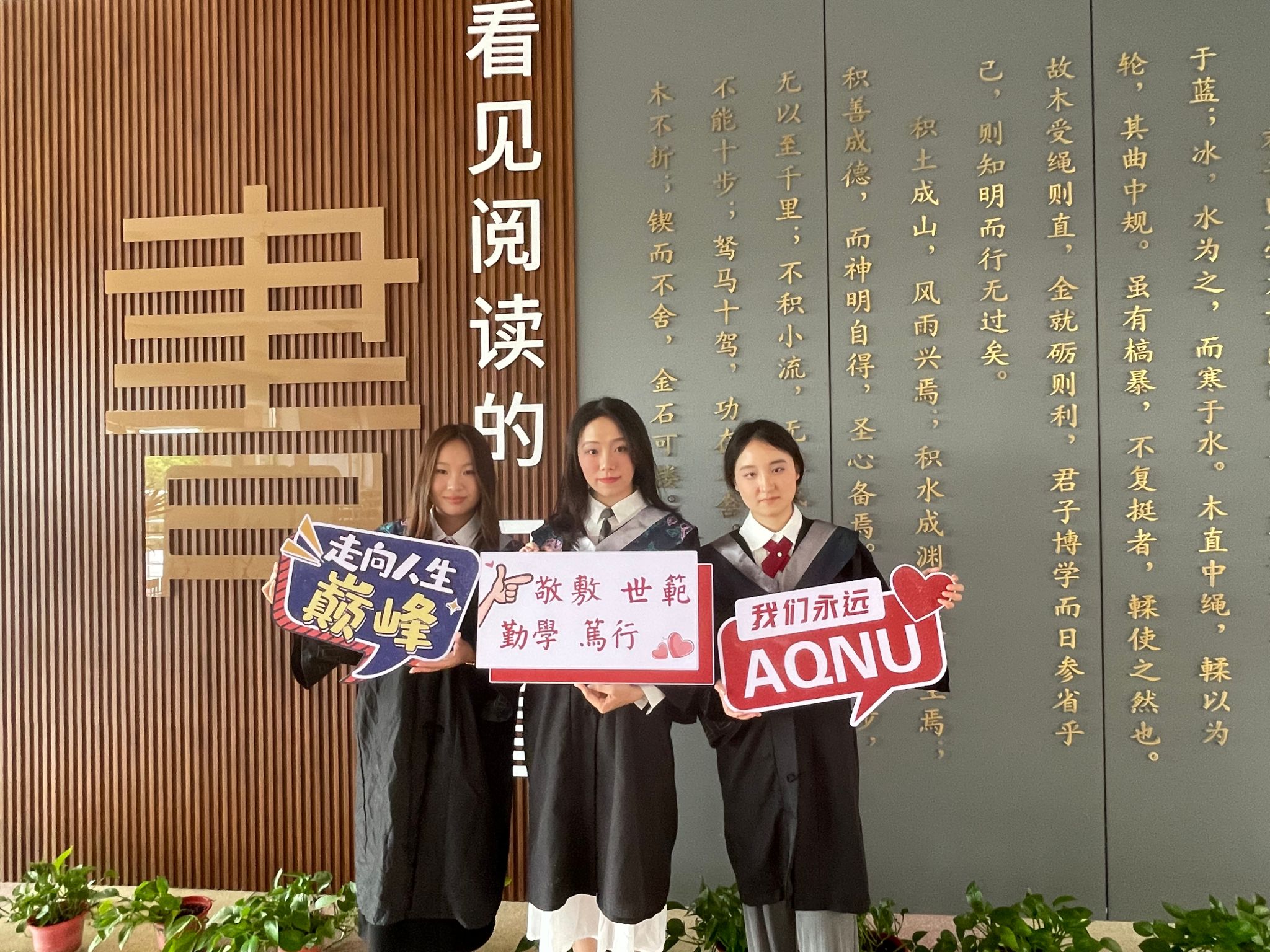 “书香有影”毕业留影打卡活动深受欢迎。图书馆作为校园文化活动中心,学生学习重要场所,见证了同学们四年的成长成人,每个角落都留有他们的珍贵记忆。今年图书馆特意为毕业生设计了打卡KT板和写满各种祝福的手卡,活动受到了毕业生的热烈追捧,逸夫馆内外,身穿学士服的学子争相合影。他们在“我们毕业啦”的KT板边深情合影;手持写满祝福的手卡在馆内馆外标志性建筑旁合照、打卡留念……表达对学校的留念和对未来的憧憬。