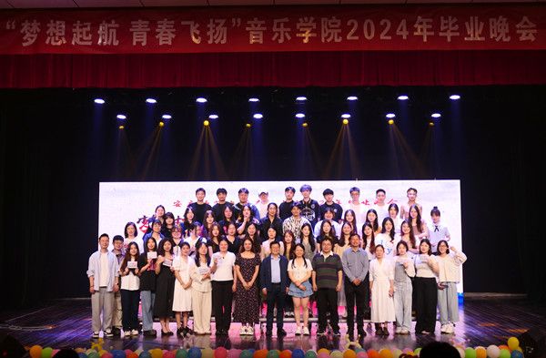 6月5日,音乐学院在音乐厅举办“梦想起航 青春飞扬”2024年毕业晚会。学院副院长徐冉、彭传山,党委副书记肖之进,部分教师和全体毕业生参加晚会。