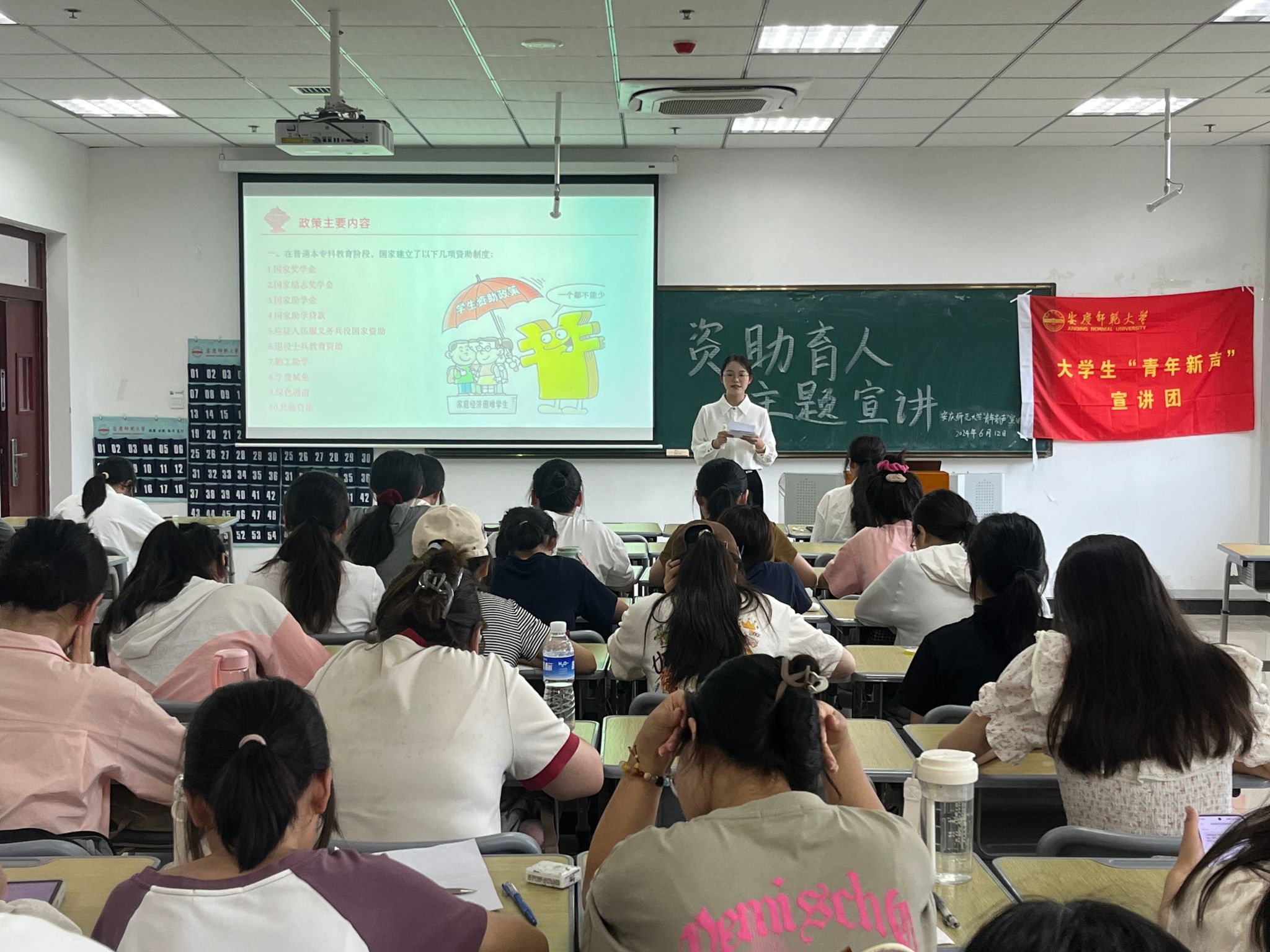 “青年新声”宣讲团成员杨艳敏、孟圆圆两位宣讲人从习近平总书记对青年的寄语说起,以饱满的热情和生动的案例,向在场学生详细解读了国家及学校的资助政策,包括奖学金、助学金、勤工俭学等多种形式的资助措施。宣讲人员强调,这些政策不仅为家庭经济困难学生提供了经济上的支持,更是对青年个人成长和发展的巨大鼓舞。