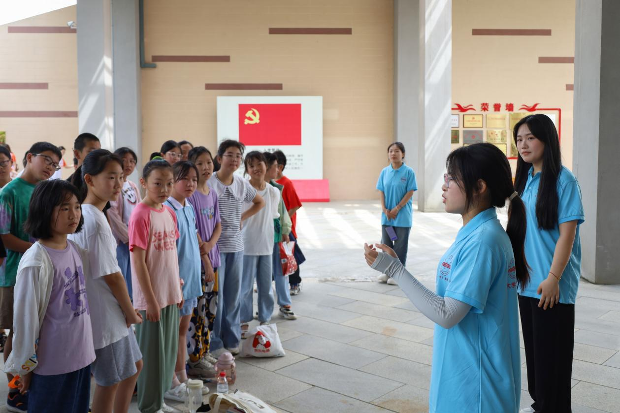 实践团队长、英语(师范)专业2022(3)班的罗倩倩介绍了“青春新献礼 筑梦向未来”教育关爱实践团的基本情况、日程安排及课程设置。“学院致力于打造‘青’字号品牌,秉持‘敬敷示范,勤学笃行’校训,着力发展‘青·敬敷’品牌教育关爱实践活动。”罗倩倩指出,本次实践设置20余种课程,包括邓稼先精神主题教育课程,法语、趣味英语等语言课程,粘土、书法等艺术课程。“期待学生在我们的课程中有所收获,同时,我们会根据学生意见对课程进行实时更新和改进,为学生提供全方位实践服务。”