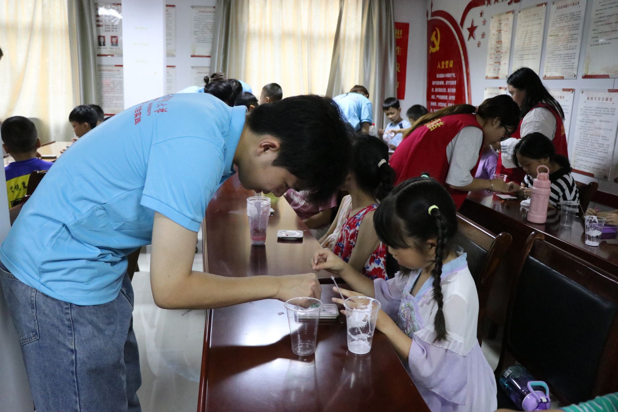 如何让科学更有趣?化学化工学院“学以致用——H₂O传习工艺坊”化学工艺品制作体验暑期社会实践团集思广益、大胆创新,开创“化学工艺品+”体验活动。近日,该团队前往大观区燎原社区,为社区的小朋友们举办了一场与书法课结合的化学工艺品DIY制作活动。