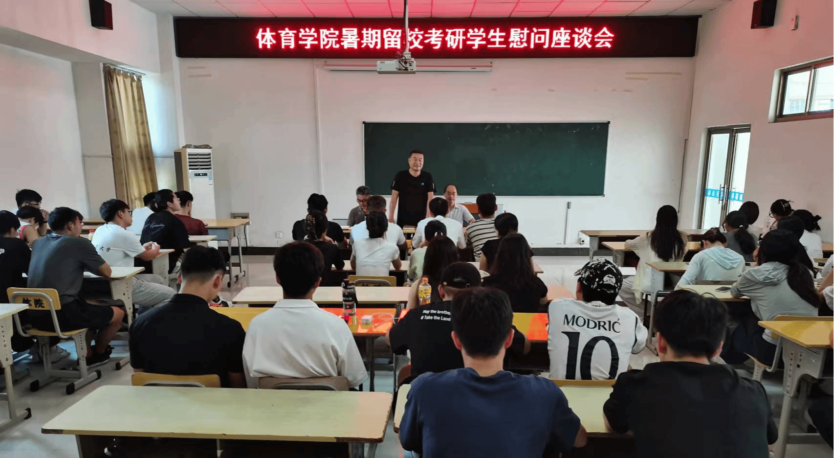 7月23日,体育学院院长周多奇、党委副书记王玮和副院长王晓东一行深入教室、健美操馆和舞蹈房,召开留校考研学生座谈会,并走访慰问了暑期赛事集训学生。