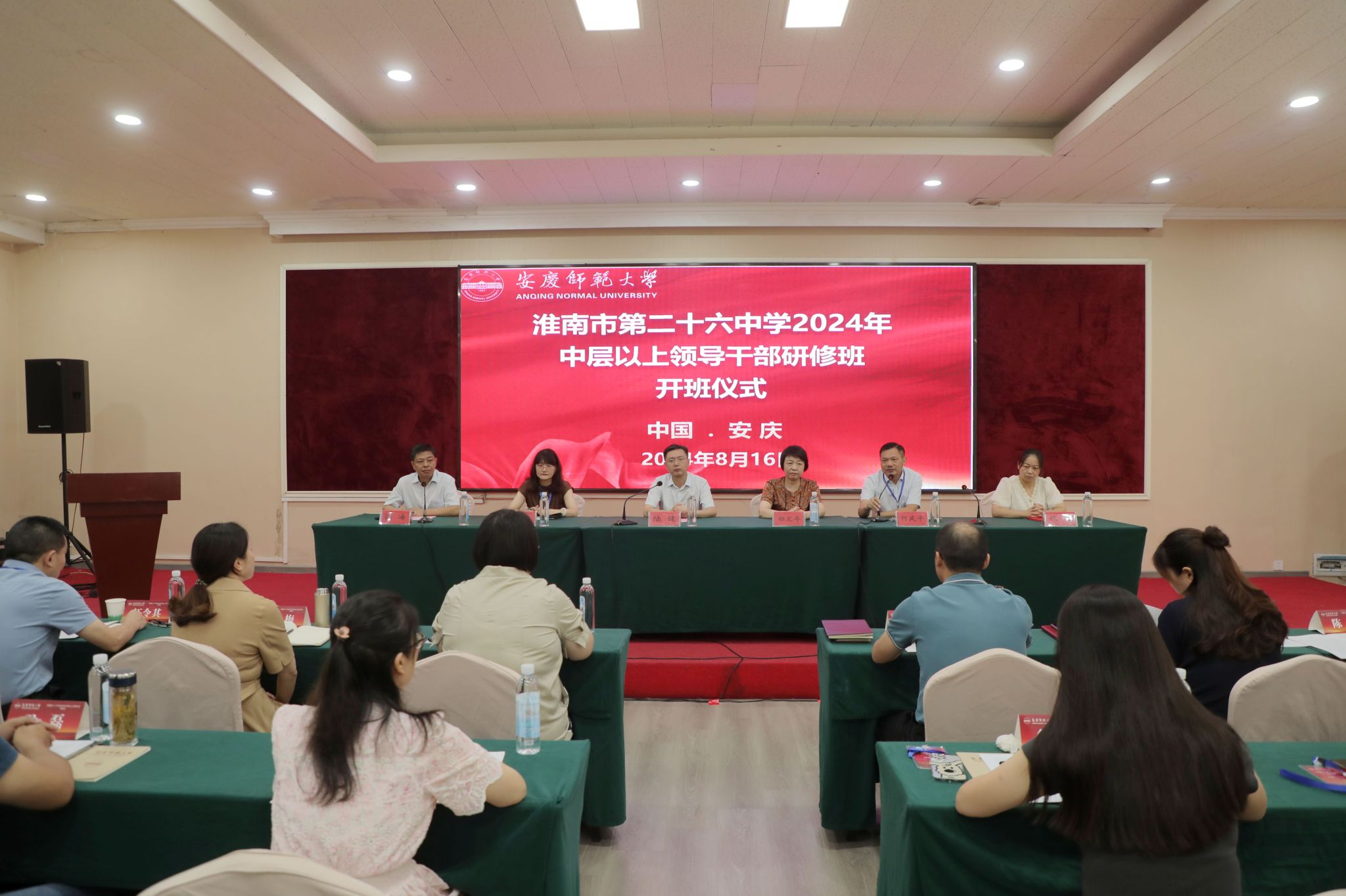 8月16日,数理学院举行淮南市第二十六中学2024年中层以上领导干部研修培训开班仪式。数理学院党委书记陆健,数理学院副院长张海、殷周平,继续教育学院副院长代花,淮南市教师进修学校校长郑文年,淮南市第二十六中学党委书记陈桂平、校长何武平,培训班班主任等出席开班仪式。开班仪式由张海主持。